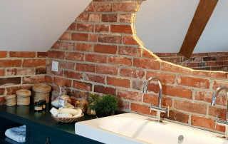 Brique pour le mur de forme rectangulaire, récupérée dans de vieux bâtiments. Les origines uniques et la technique de production artisanale rendent chaque pièce unique et légèrement différente, tout en assurant la cohésion de l’ensemble du mur.