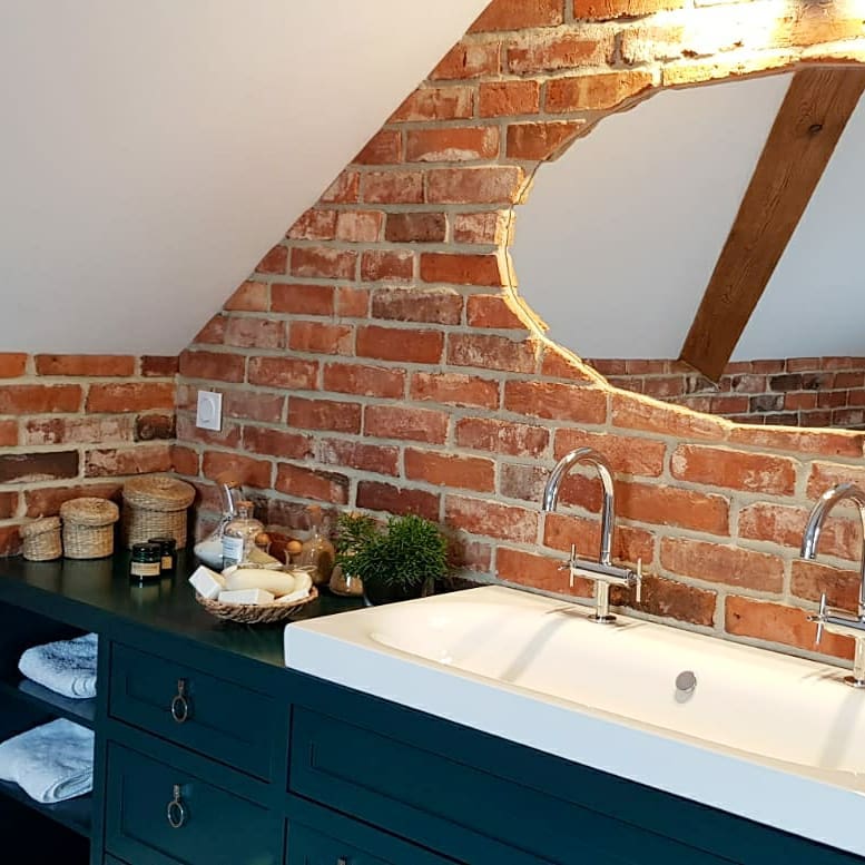 Brique pour le mur de forme rectangulaire, récupérée dans de vieux bâtiments. Les origines uniques et la technique de production artisanale rendent chaque pièce unique et légèrement différente, tout en assurant la cohésion de l’ensemble du mur. Grâce à leur design classique et à leurs couleurs naturelles, les carreaux de brique sont intemporels et ne deviennent jamais ennuyeux. Ils ajoutent de la chaleur et de la convivialité aux intérieurs et s’intègrent à de nombreux styles de design différents, notamment traditionnelle, provençale, organique ou industrielle. La brique se distingue par sa texture brute et rustique et par les fragments de mortier et les brûlures visibles sur certaines tuiles.